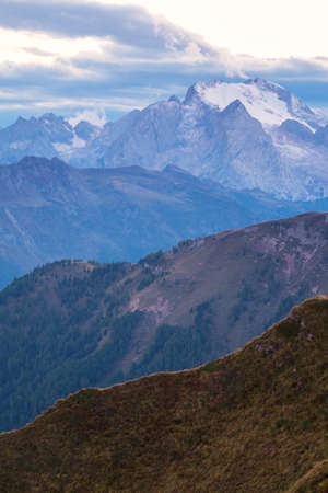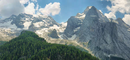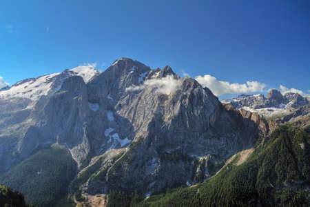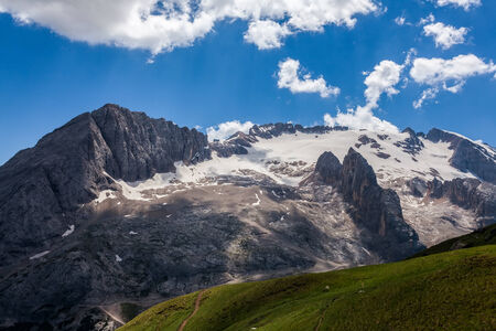 summer view of Marmolada mountain, Italian Dolomites