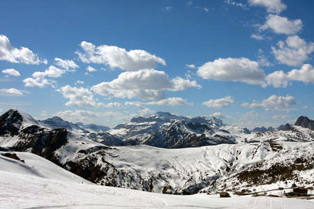 Mountain landscape with blue sky and clouds, Dolomites, Italy