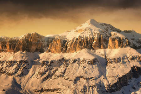 Marmolada group in winter season on the italian Dolomites mountains. Italy.