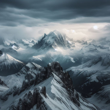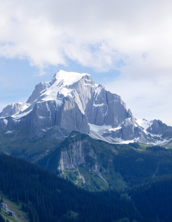 Mountain landscape with snow-capped peaks of the Alps.