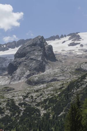 glacier on rocky mountain in summer season