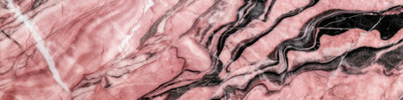Glossy coral pink marble texture with dark brown veins for interior design and decor