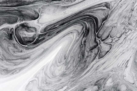 Close Up Black And White Colors Fluid Pouring Abstract Art Acrylic Painting Texture Background