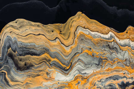 Acrylic Fluid Art. Golden marble wave zigzag on black. Abstract background or texture.