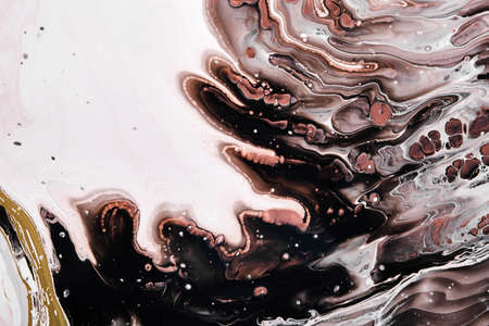 Acrylic Fluid Art. Brown and black waves and stains. Abstract marble agate stone background or texture