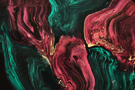 Abstract bright shiny color fluid background, hand drawn alcohol painting with golden streaks. Liquid ink technique texture backdrop design