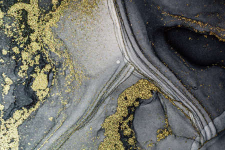 Photography of abstract marbleized effect background. Black, gold and white creative colors. Beautiful paint