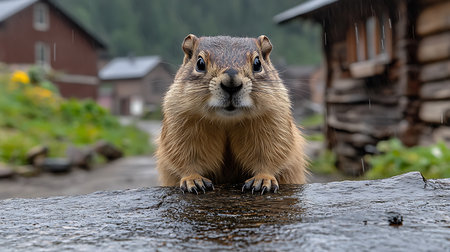 Generative AI Image of Groundhog Day Predict Rain Weather in Rural Building
