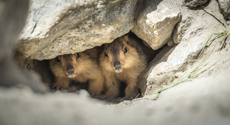 Curious marmots in the mountains, animals in nature, wildlife