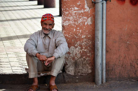 Marrakech, Morocco.November 23, 2012. Elderly man sitting in the streets of Marrakech