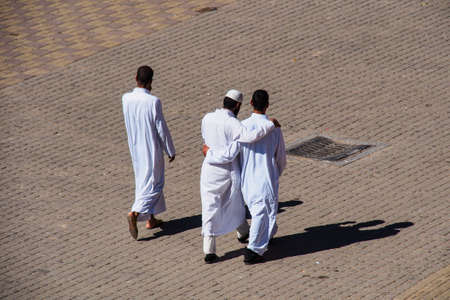 MARRAKESCH, MOROCCO, JUNE 2016: old moroccan in traditional clothes on the city streets