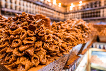 Traditional moroccan sweets on sale at a street food stall or market