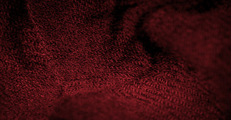 Background of a knitted fabric texture in dark red colors. Close-up