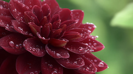Dew-Kissed Burgundy Dahlia: A Close-Up Display of Nature's Intricate Details