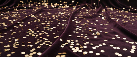 AI Generated. Shimmering golden confetti scattered on dark velvet background