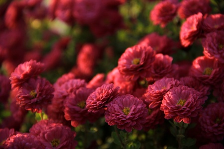 Red chrysanthemum flowers as a background, top view