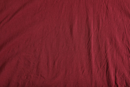 Crumpled dark red fabric as background, top view