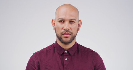 Serious, man or portrait of teacher in studio for college, education or university course. Face, school and proud male educator isolated on white background for learning, about us and teaching