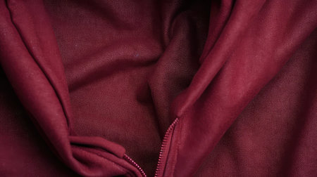 A close-up view of rich burgundy velvet fabric, showcasing its luxurious texture and smooth drape, perfect for fashion, interiors, or artistic backgrounds.