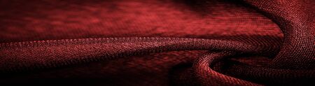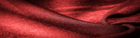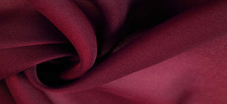 texture of background fabric is raspberry burgundy color, silky folds, monochromatic pattern. Header banner mockup with copy space.