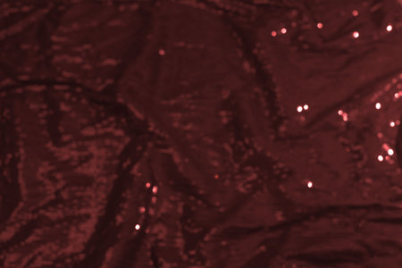 Silk red. The fabric is embellished with sequins. background, silk satin, luxurious texture, dark fabric, costume cotton material, abstract color image pattern, delicate liquid emerald velvet