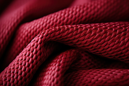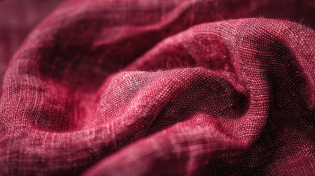 A close-up view of organic cotton fabric revealing its textured surface, with rich red hues that create an inviting atmosphere, enhancing the tactile appeal, perfect for design projects.