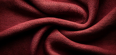 Jersey cotton fabric texture. Crumpled dark red textile background