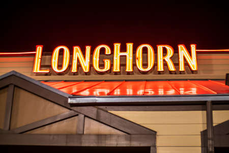Augusta, Ga USA - 11 22 20: LongHorn Steakhouse Restaurant at night building sign
