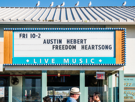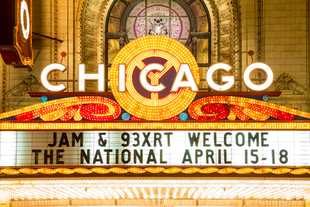 Bright lights advertise a popular place for shows and concerts in Chicago, Illinois