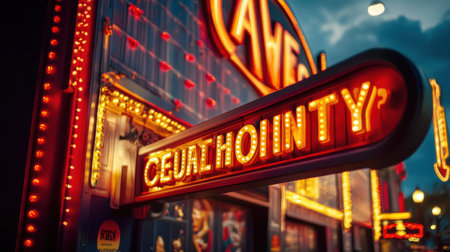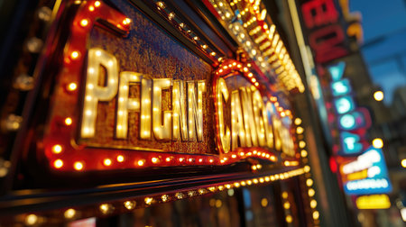 A stunning glimpse of a vintage theater sign adorned with vibrant neon lights, exuding a lively atmosphere and capturing the timeless appeal of urban entertainment scenes.
