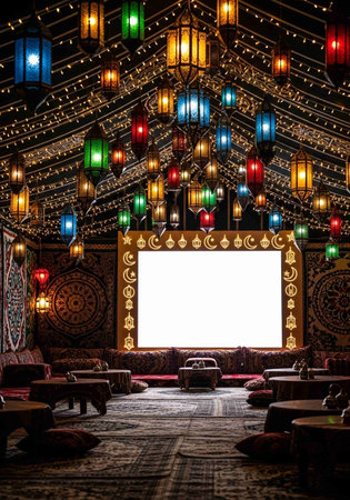 The evening lights at a festive venue create a magical ambiance that captivates everyone