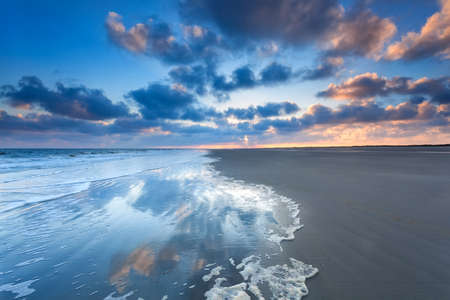 cloudscape reflected in sea at sunrise, Schiermonnikoog, Netherlands