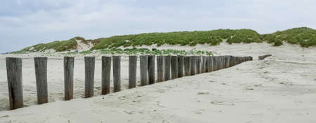 Panoramic view of wooden breakwater along the Dutch coast of Ameland