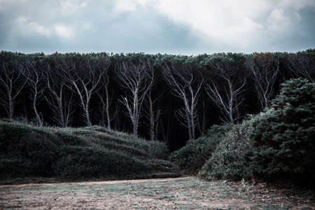 Trees on the edge of dense dark forest, Costa Smeralda, Sardinia, Italy