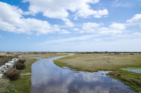 A water filled dirt road at the Great Alvar Plain on the swedish island Oland in the Baltic sea