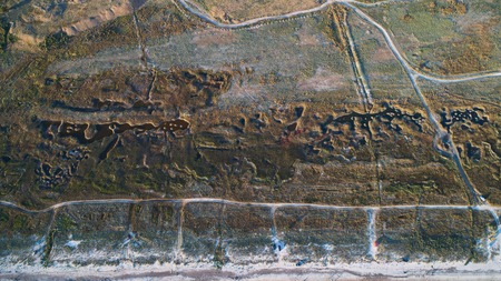 Aerial view of Tuzly Estuary National Nature Park near by Black Sea coast, Tatarbunary region, Bessarabia, Ukraine
