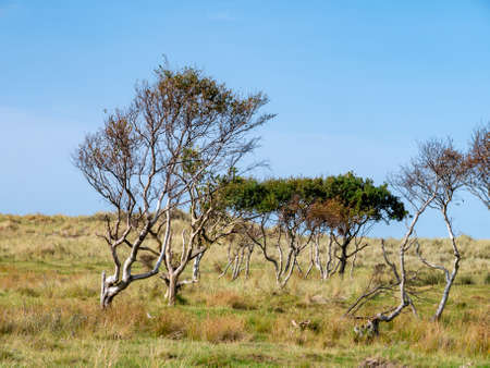 Group of birch trees, Betula, in dune landscape in nature reserve on West Frisian island Vlieland, Netherlands