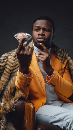 Portrait of an hip hop music musician. Cinematic image of a man wearing white clothes and jewels