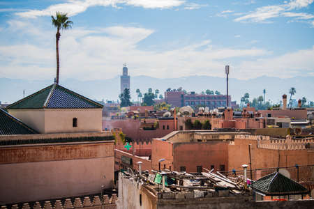 Cityscape of the old medina in Marrakech, Morocco, Africa