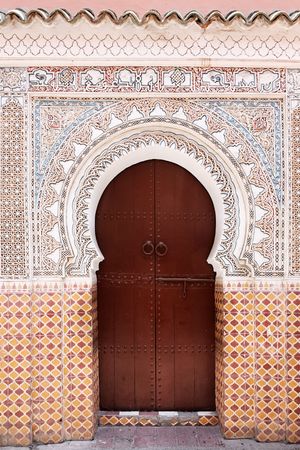 Marrakesh, Morocco - February 28, 2018: The architecture of the old Medina district of Marrakech.