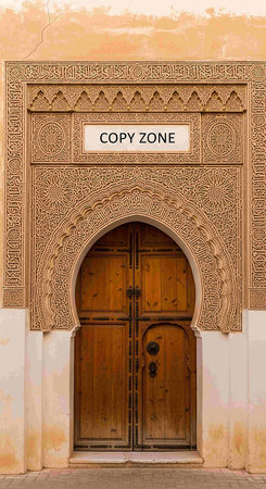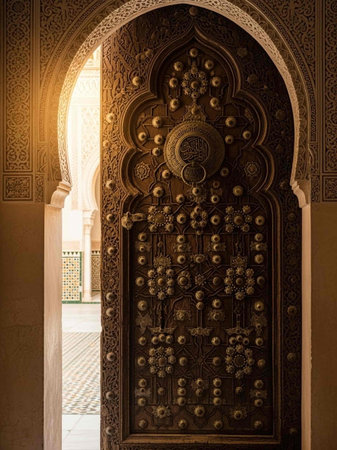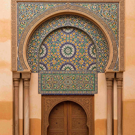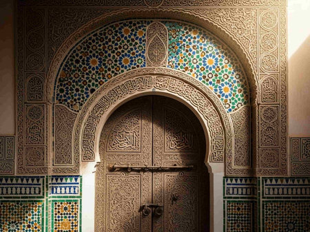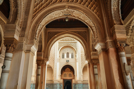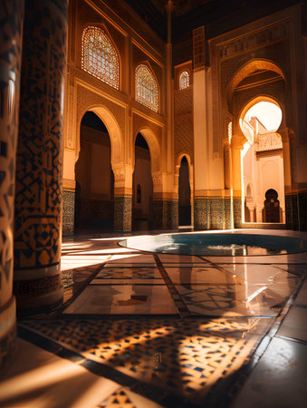 Intricate details covering the walls and arches of a moroccan courtyard showcasing moorish architecture