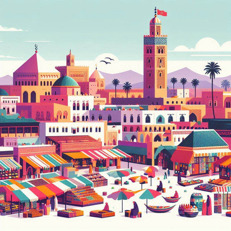 Get ready to be transported to the vibrant cityscape of Marrakech, Morocco, as you explore its lesser-known attractions. This immersive image captures the essence of the bustling marketplace, overflowing with exotic spices, colorful textiles, and vibrant street art. Delve into the secrets of the city by exploring a winding alleyway adorned with ancient doorways, leading to mysterious riads. Uncover off-the-beaten-path adventures like a camel caravan trekking through the Sahara Desert or a tranquil escape in a secluded oasis. This image evokes a sense of intrigue and discovery, igniting curiosity and wanderlust in viewers.