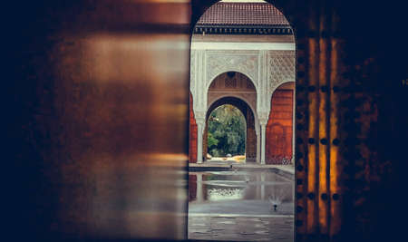 Medina (Old Town) of Marrakesh, Morocco. Details of historic Ben Youssef Madrasa and mosque.
