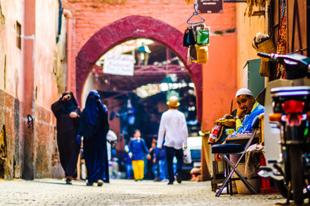 Marrakech, Morocco on 31th October 2015: View on Woman and locals in the in Souk of the old city