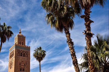 Marrakesh, Morocco - March 17, 2016 - Koutoubia Mosque with blue sky