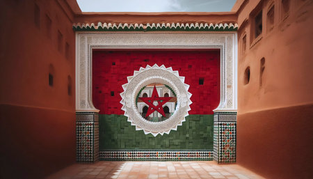 A Moroccan flag in intricate zellige tilework and architecture, Ai generated image