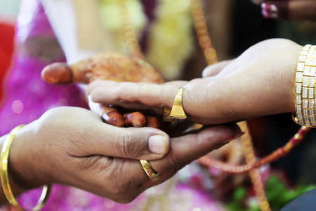 Close-Up of Hindu Wedding Ring Ceremony.Wedding Rings.Details of Nepali Indian Wedding rings ceremony