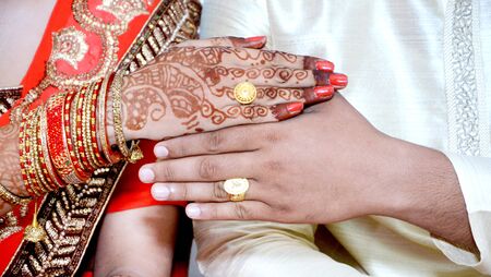 Indian Traditional Wedding: Groom and bride hand