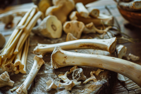 A visually informative arrangement of assorted animal bones showcasing various shapes and sizes, ideal for educational materials, scientific exploration, or forensic analysis.