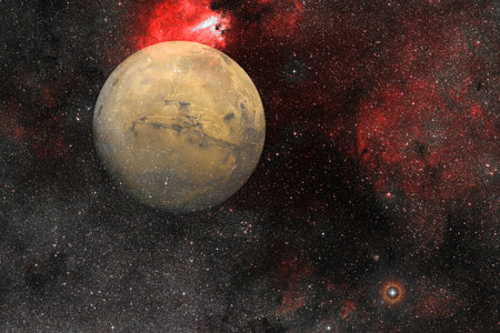 Planet Mars in the Starry Sky of Solar System in Space.